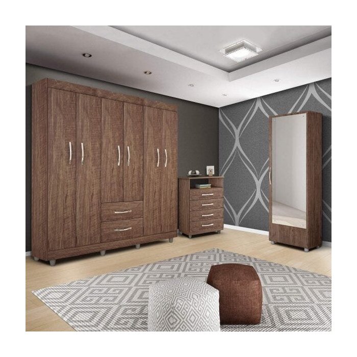 Quarto de Casal com Sapateira, Cômoda e Guarda-Roupa 6 Portas Clint Espresso Móveis