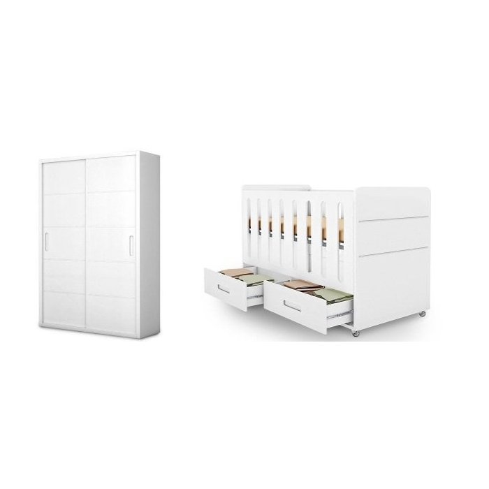 Quarto Infantil Bebe Berço e Roupeiro Domique Branco Acetinado Planet Bbay