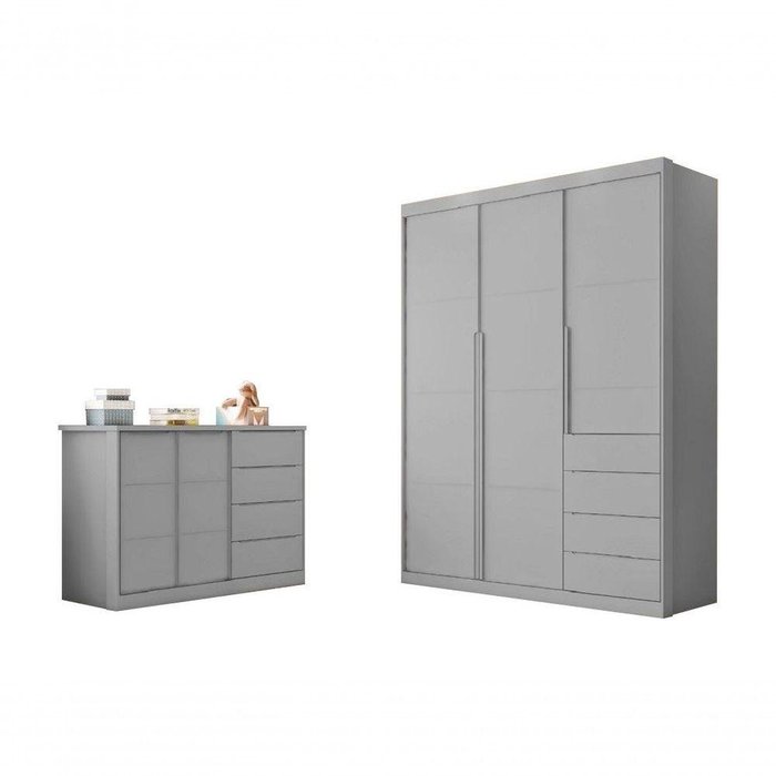 Quarto Infantil Bebê Pérola Cômoda E Guarda Roupa Cinza Cinza