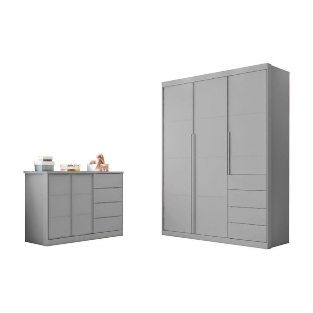 Quarto Infantil Bebê Pérola Cômoda e Guarda Roupa Cinza Pérola