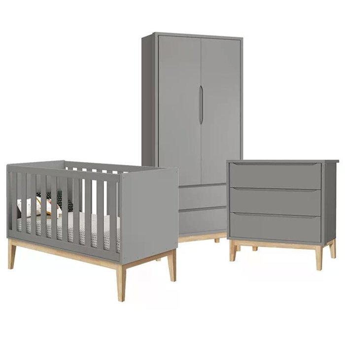 Quarto Infantil Classic 2 portas Cinza Fosco com Pés Madeira Natural - Reller Móveis