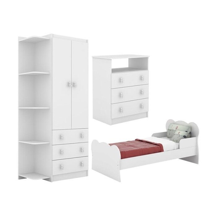 Quarto Infantil Completo 03 Peças Branco Djd Moveis Branco