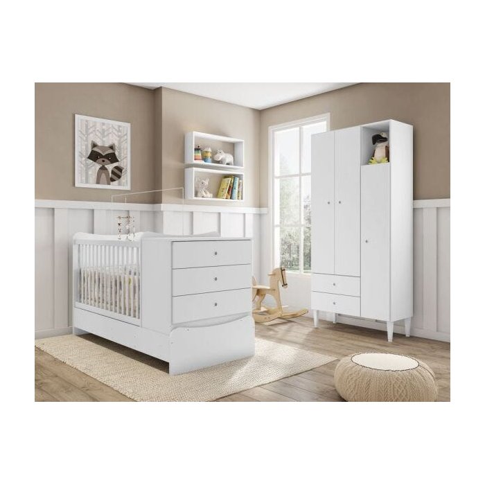 Conheça Quarto Infantil Completo Berço e Cama com Comoda Americano Fofura, Guarda Roupa, 2 Nichos Grandes, na cor Branco, fabricado pela Art In Móveis. Surpreendentemente irá tornar o quarto do seu filho, em um ambiente ponderado, através do design delicado, perfeito em combinação com uma decoração clean.O Berço e Cama com Comoda Americano Fofura une de vez a praticidade e a qualidade, muito além da que você imaginou, não demore para oferecer ao seu filho o conforto e a beleza que só ela possui. Em uma combinação perfeita com a Guarda-Roupas 3 portas Infantil e o Nicho Grande Infantil Meu Fofinho, arranche suspiros de seu filho!Estes produtos foram Produzidos em excelente material MDP 15 mm e com acabamento em Finish Foil Acetinado, que garantem maior resistência e qualidade em seus móveis.A essência de criar soluções que trazem mais conforto sua vida é o grande diferencial dos produtos Art In Móveis. Cada nova ideia é uma mistura de criatividade, funcionalidade e muita dedicação.Itens Inclusos Quarto Infantil Berço Guarda Roupa Nicho: