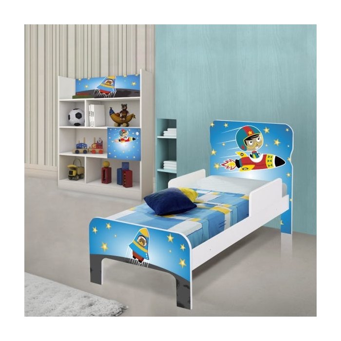 Quarto Infantil Completo - Cama Infantil Adesivada Astronauta e Estante Infantil Adesivada Astronauta