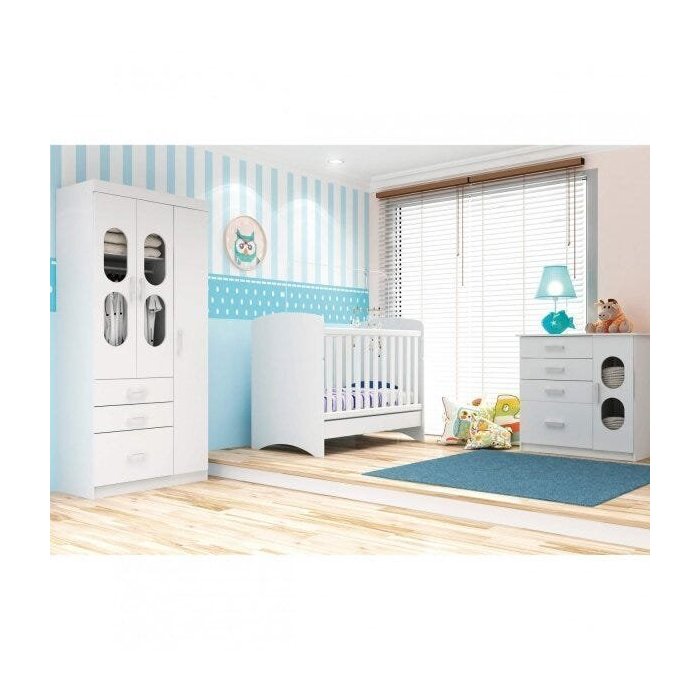 A magia de montar o quarto para o bebê é indescritível, toda mãe sabe disso e valoriza esse momento. Para transformar o quarto do seu bebê em um lugar especial a Rodial Moveis traz esse lindo ambiente completo com guarda roupas de 3 portas 2 gavetas e um gavetão. Muito espaço e estilo para organizar as roupinhas de forma muito prática. A cômoda também foi pensada para facilitar a vida da mamãe, tem 3 gavetas e um gavetão, além de uma porta com prateleira. Para completar o berço tamanho americano é multifuncional, vira cama e sofá, acompanhando o crescimento de seu filho. Um ambiente lindo para um momento magico, tudo isso para que essa fase seja inesquecível.