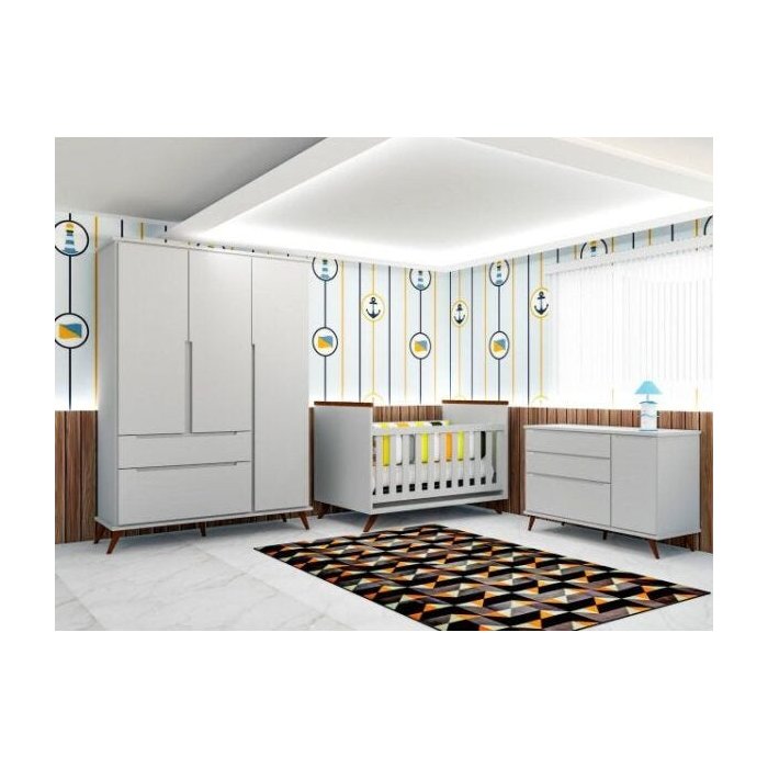 Linha: RetrôCor: CinzaCertificado Inmetro: SimVarão: SimPintura Atóxica: SimRegulagem Estrado: 3 – Níveis de alturaColchão Indicado: Padrão Americano 70x130 (não incluso)Pés: 04 pés em madeira Dimensões do Berço:Altura: 112 cmLargura: 136 cmProfundidade: 78 cm CÔMODA SAPATEIRA JULIA Especificações da Cômoda:Estrutura: 100% MDFLinha: JuliaCor: CinzaPortas: 01Gavetas: 03Pintura Atóxica: SimCorrediça: TelescópicaPrateleiras: 01Cabideiro: 01 Dimensões da Cômoda:Altura: 91 cmLargura: 113 cmProfundidade: 46 cm GUARDA ROUPA JULIAEspecificações do Roupeiro: Estrutura: 100% MDFLinha: JuliaCor: CinzaPortas: 03Gavetas: 02Pintura Atóxica: SimCorrediça: TelescópicaPrateleiras: SimCabideiro: 01 Dimensões do Roupeiro:Altura: 205 cmLargura: 133 cmProfundidade: 46 cm Instruções de Montagem:- Não realizamos a montagem, lembramos que a montagem é de total responsabilidade do comprador!- Contém manual de montagem, porém recomendamos que isto seja feito por empresa ou pessoa especializada. Informações de Entrega e Garantia:Meio de Envio: Transportadora Garantia: 90 Dias após o recebimento Volumes: 06 Observações:- As fotos são desenvolvidas para apresentar ao máximo a cor real do produto. Porém, as cores podem variar de acordo com o seu monitor, iluminação do ambiente em que você está e até mesmo a sua percepção visual.- Antes de Comprar Verifique as medidas se adéquam ao seu ambiente.- Os objetos que ambientam as fotos não acompanham o produto.-Para manutenção e preservação de seu móvel é importante seguir estritamente nossas dicas: Evite locais úmidos, mantenha-o distante de líquidos e de fontes de calor, evite a exposição prolongada ao sol. Para limpeza, sugerimos a utilização de uma flanela seca para tirar pequeno resíduos, em caso de limpeza úmida fazer o uso de uma flanela parcialmente úmida e sabão de coco