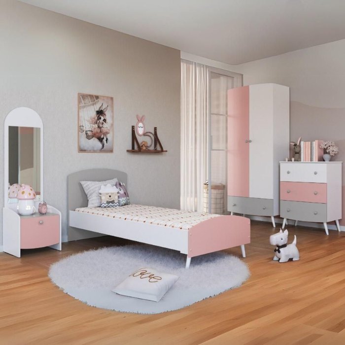 Quarto Infantil Completo para Colchão 78x188cm Doçura Multimóveis Mp4376 Branco/cinza/rosa