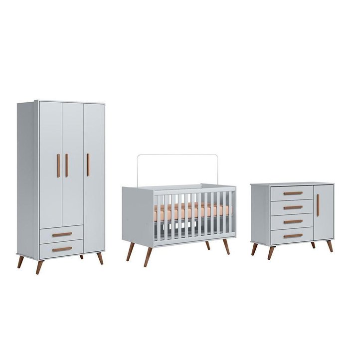 Jogo de Quarto Encanto Retrô Cinza - QmoviProduto: Berço Mini Cama Q Encanto Retro Cinza - Qmovi