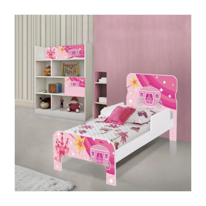 Quarto Infantil Completo - Cama Infantil Adesivada Carruagem Castelo e Estante Infantil Adesivada Carruagem Castelo