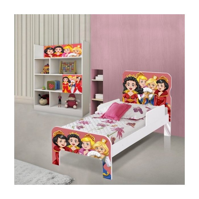 Quarto Infantil Completo - Cama Infantil Adesivada Princesas Medievais e Estante Infantil Adesivada Princesas Medievais