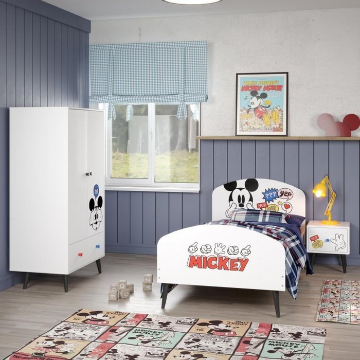 Quarto Infantil Mickey com Cama, Guarda Roupa e Cabeceira Disney Fun CabeCasa MadeiraOriginals