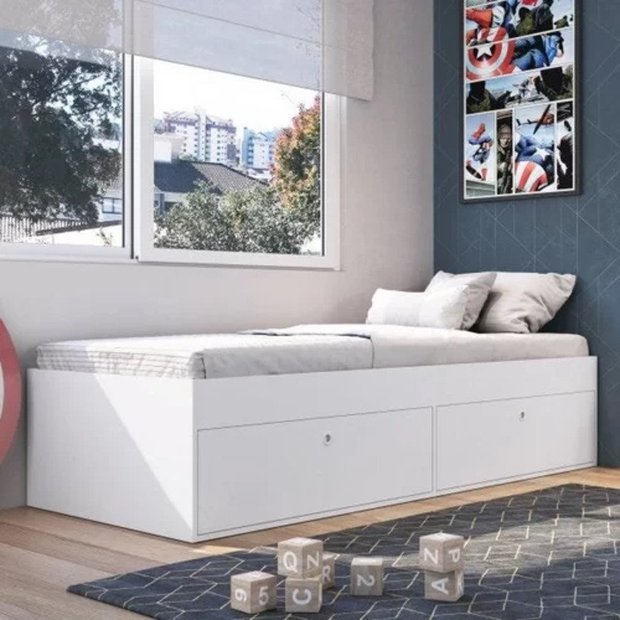 PRODUTO - QUARTO JUVENIL COM CAMA 80 E MESA DE CABEÇEIRA TÓKIO BRANCO