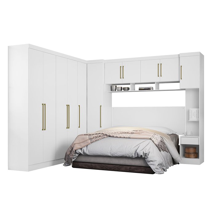 Quarto Modulado Branco Modulado Paris Guarda Roupa Armário - Mercado dos Móveis