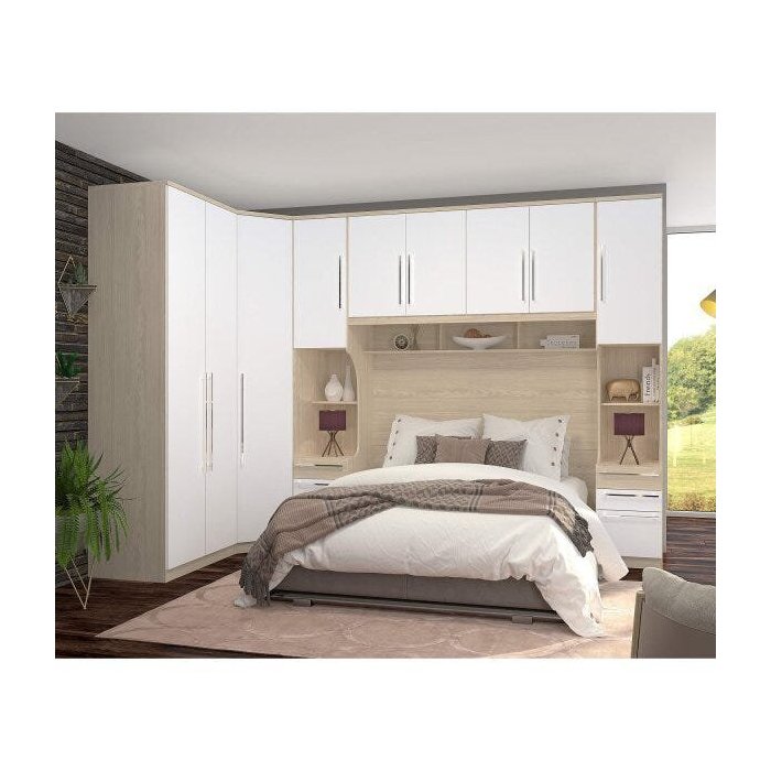 Quarto Modulado Casal 5 Peças Safira Espresso Móveis Avelã/Branco