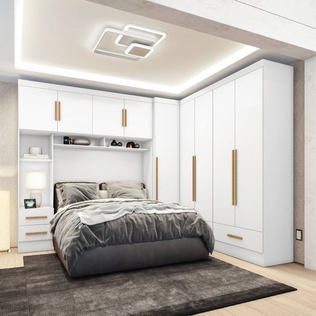 Quarto Modulado Casal Completo 100% MDF 4 Peças 5 Portas 4 Gavetas com Maleiro Smart Plus Branco