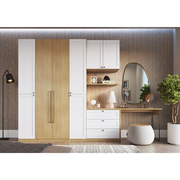 Composta por 7 peças, a linha proporciona um amplo espaço de armazenamento, garantindo organização para roupas, calçados, acessórios e objetos pessoais. Seu design inteligente otimiza o espaço, tornando o ambiente mais funcional e harmonioso.