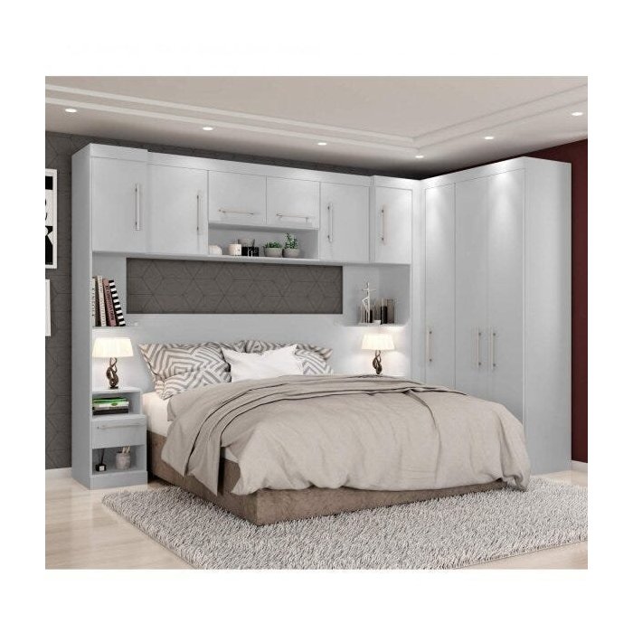- Guarda-roupa de canto: o guarda-roupa de canto é desenvolvido para usar de forma inteligente os espaços de duas paredes, aproveitando, inclusive, os cantos. Ideal para quem não tem muito espaço disponível ou para quem quer otimizar todos os espaços da melhor forma.