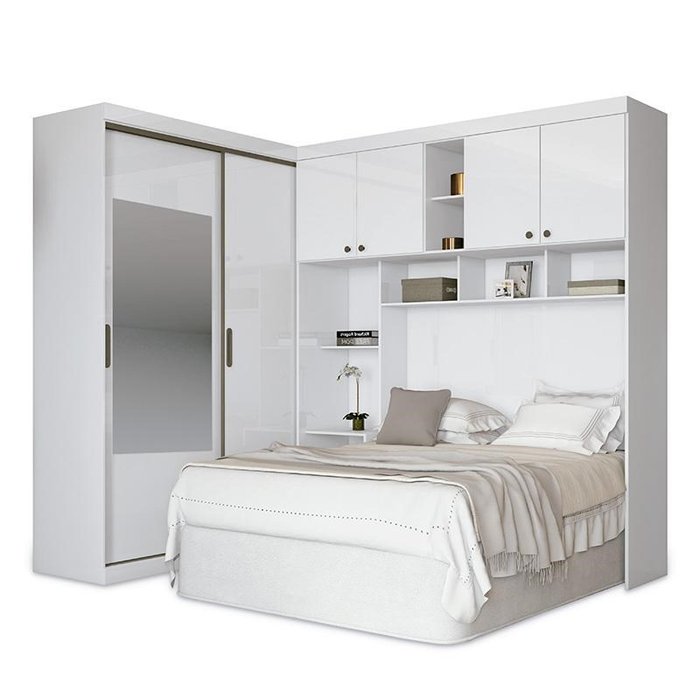 Quarto Modulado Casal Paris Branco com Espelho - PR Móveis Branco