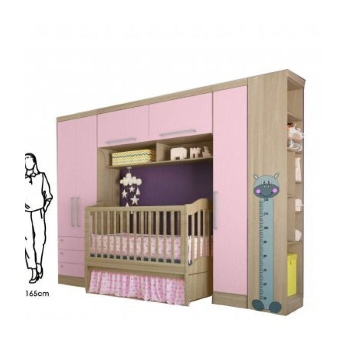 O Quarto Modulado de Bebê pertence a nossa linha de produtos Infinity. Neste conjunto são 04 módulos com altura padrão de 217 cm, portas com puxadores em alumínio, uma ponte com pistão em suas portas além do nicho muito útil para colocação de objetos e decoração. O berço e a régua ao lado no nicho são meramente ilustrativos. Surpreenda-se.