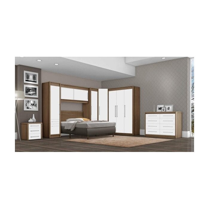 Quarto Modulado de Casal 7 Peças Vegas Fama Móveis Branco/Ipê