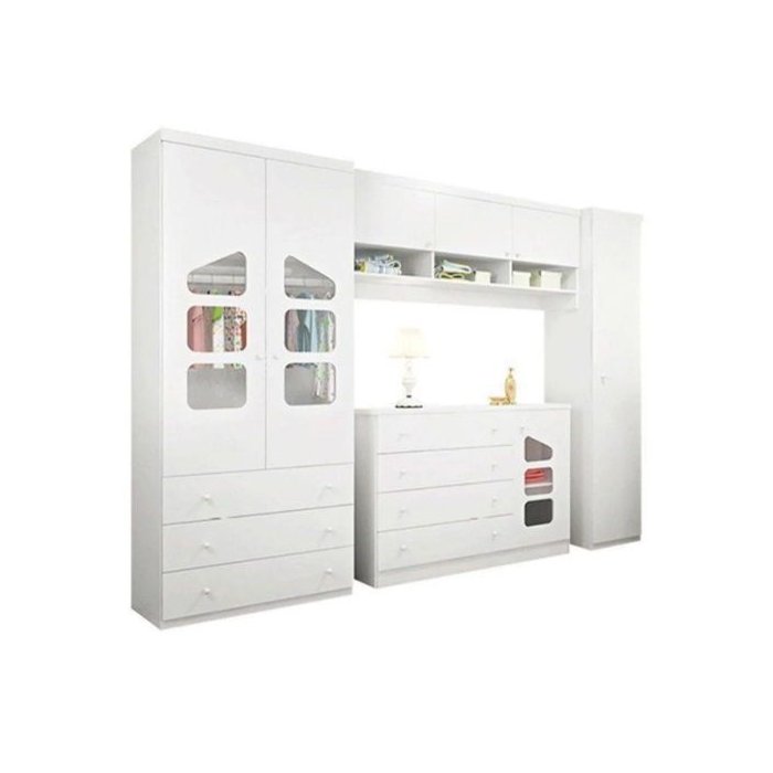 Quarto Modulado Infantil em Mdf Cômoda Roupeiro Aéreo Eloisa - Isi Shop