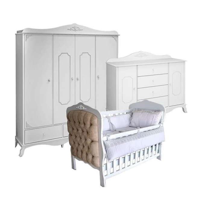 Lindo Jogo de Quarto Inafntil Paris / Realeza Provençal – Beleza e Requinte com toque de realeza neste lindo quarto em 100% MDF e com um diferencial: o capitonê do berço você escolhe a cor da decoração do quartinho de seu bebê.