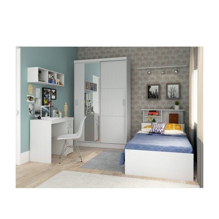 Quarto Solteiro Completo 4 Peças Móveis Castro Branco/Branco/Boucle