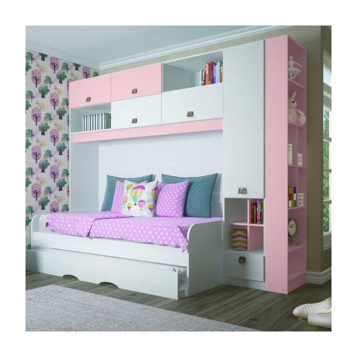 Quarto Solteiro Completo Conjugado 4 peças Branco/Rosa Blush Móveis Castro