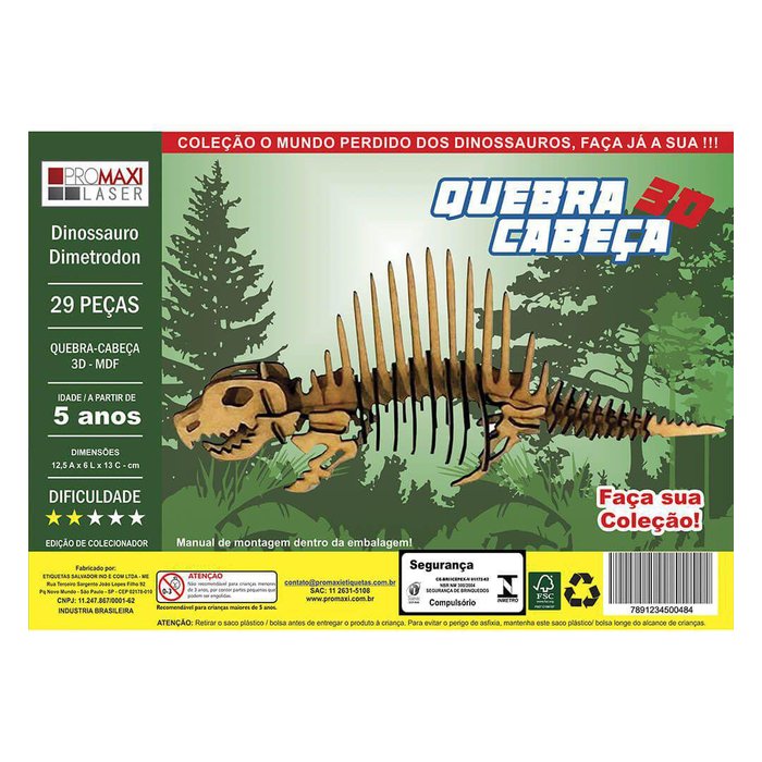 Quebra Cabeça 3D Dinossauro Dimetrodon 29 Peças