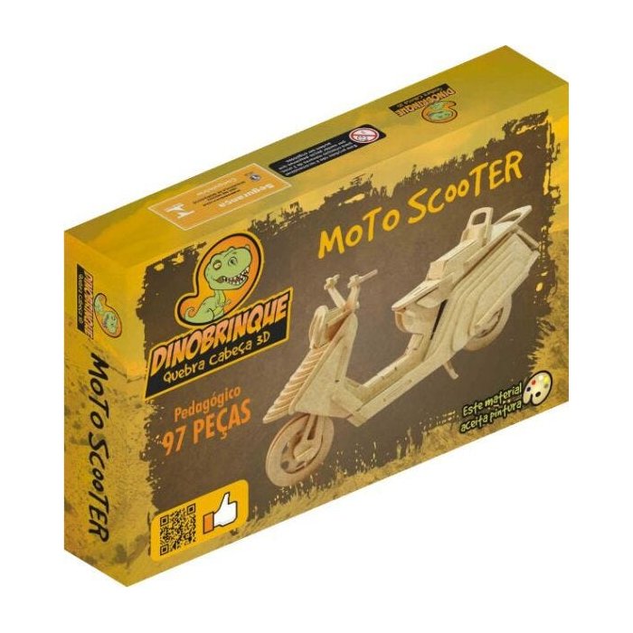 Quebra Cabeça 3D Moto Scooter 97 Peças em MDF - Dinobrinque