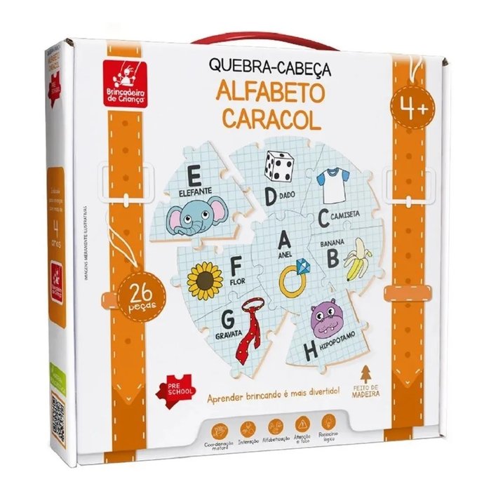 Quebra Cabeça Alfabeto Caracol Educativo Feito de Madeira BRINCADEIRA DE CRIANÇA
