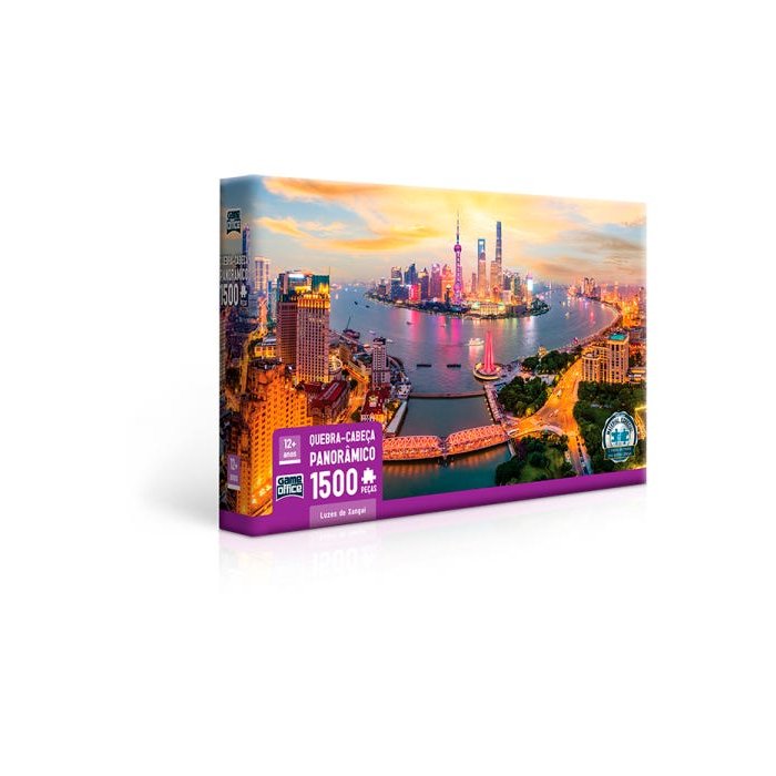 Quebra-cabeça de 1500 peças panorâmico para você montar das Luzes de Xangai.