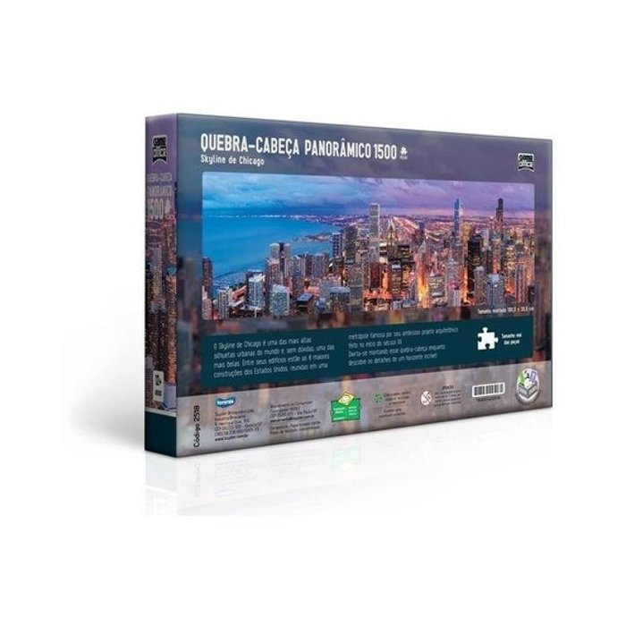 Quebra Cabeça Panorâmico Skyline Chicago 1500 Peças Toyster