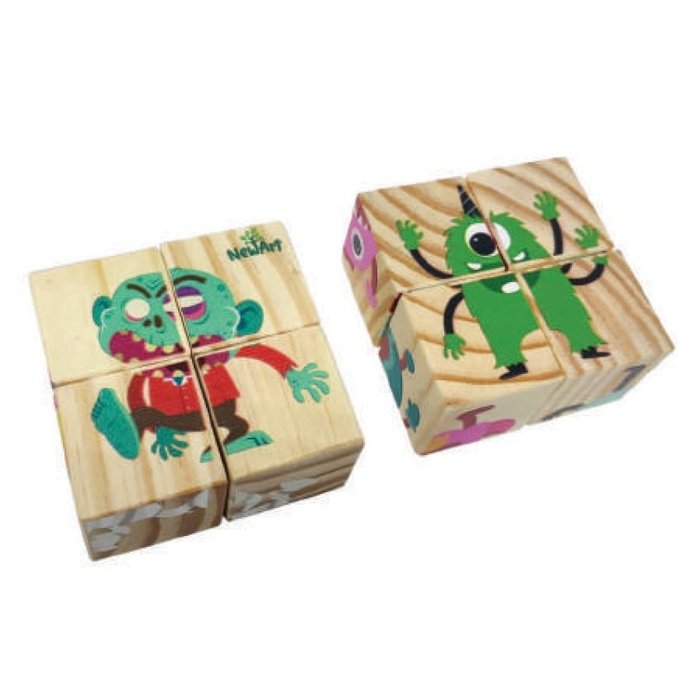 Quebra-Cabeças 8 Cubos Baby Monstros, de Madeira, da NewArt - Cód. 187 NewArt Toys