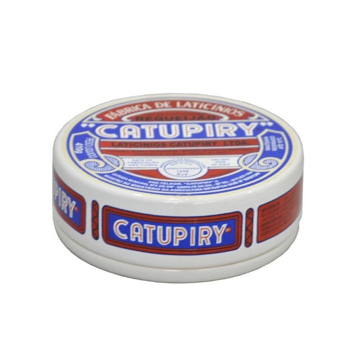 Queijeira produzida em porcelana com detalhes da marca de requeijão Catupiry, uma peça retrô para complementar sua decoração.