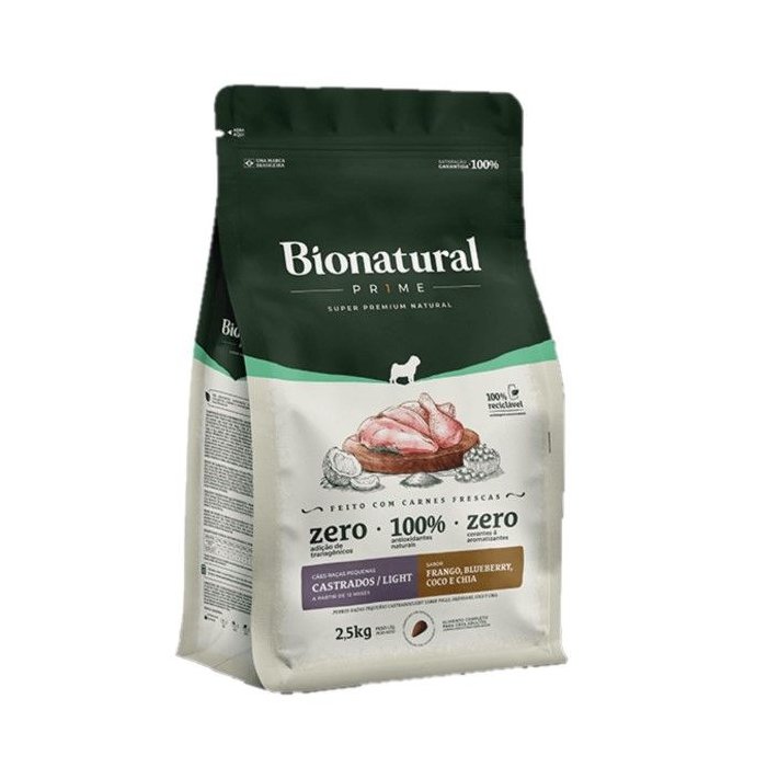 Ração Bionatural Prime para Cães Adultos Castrados/light Raças Pequenas Sabor Frango - 2,5 Kg