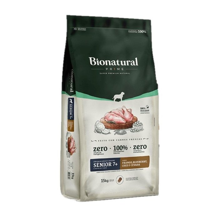 Ração Bionatural Prime para Cães Adultos Sênior 7+ Raças Médias e Grandes Sabor Frango - 15 Kg