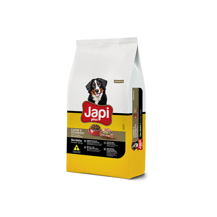 Ração Cães Adultos Premium Linha Plus sabor Carne e Ossinho 25kg - Japi