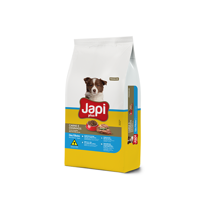 Ração Cães Filhotes Premium Linha Plus sabor Carne e Ossinho 25kg - Japi