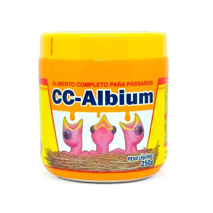 Biotron CC Albium é um pó que misturado com água vira uma papa para alimentar filhotes de pássaros, é uma papinha completa e específica para todo tipo de ave. Pode ser fornecida morna utilizando uma colher ou seringa.