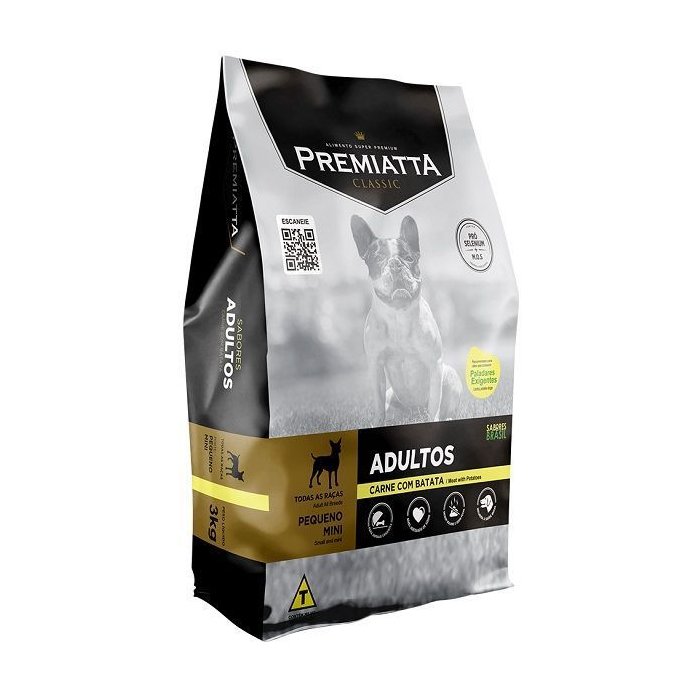 Premiatta Classic Sabores do Brasil Bife Acebolado é um alimento Super Premium Completo, indicado para Cães adultos de raças Miniaturas e Pequenas.
