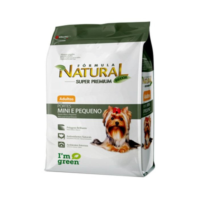 Fórmula natural super premium cães adultos portes mini e pequeno é um alimento completo, indicado para cães adultos. sua receita e suas partículas foram desenvolvidas especialmente para se adaptarem às características dos cães de portes miniatura e pequeno, a partir dos 10 meses de idade. auxílio nas defesas naturais alimento equilibrado e naturalmente nutritivo pelagem brilhante e sedosa ambientes internos antioxidantes naturais composição farinha de vísceras de aves, quirera de arroz, polpa de beterraba, farelo de trigo, óleo de vísceras de aves, palatabilizante de vísceras de suíno e frango, óleo de salmão, cloreto de sódio (sal comum), farinha de algas schizochytrium sp., prébioticos mannanoligossacarídeos, inulina, probiótico, extrato de yucca 0,04 por cento, sulfato de condroitina 0,01 por cento, sulfato de glucosamina 0,03 por cento, vitaminas a, d3, e, k3, c, b1, b2, b6, b12, biotina, pantotenato de cálcio, ácido fólico, niacina, cloreto de colina, minerais sulfato de ferro, sulfato de cobre, iodato de cálcio, cloreto de potássio, proteinato de zinco, óxido de zinco, óxido de manganês, proteinato de selênio, selenito de sódio, ácido propiônico, extratos vegetais chá verde, hortelã e alecrim, dlalfatocoferol antioxidante natural 0,001 por cento.