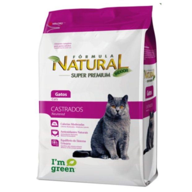 Fórmula natural super premium gatos castrados 7kg vem em fracionado em pacotes de 500g fórmula natural super premium gatos castrados é um alimento completo, indicado para gatos adultos. sua receita e suas partículas foram desenvolvidas especialmente para se adaptarem ás características dos gatos, a partir de 1 ano de idade, castrados ou com pouca atividade física e com tendência a engordar. calorias moderadas auxílio nas defesas naturais equilíbrio da flora intestinal alimento equilibrado e naturalmente nutritivo pelagem brilhante e sedosa auxílio ao sistema urinário composição farinha de vísceras de aves, quirera de arroz, farinha de proteína isolada de suíno, extrato de levedura, óleo de vísceras de aves, farelo de trigo, polpa de beterraba, fibra de canadeaçúcar, palatabilizante de vísceras de suíno e frango, óleo de salmão, cloreto de sódio (sal comum), farinha de algas schizochytrium sp., ácido fosfórico, prébioticos (mannanoligossacarídeos e inulina), probiótico, extrato de yucca (0,04%), vitaminas (a, d3, e, k3, c, b1, b2, b6, b12, biotina, pantotenato de cálcio, ácido fólico, niacina, cloreto de colina), minerais (sulfato de ferro, sulfato de cobre, iodato de cálcio, cloreto de potássio, proteinato de zinco, óxido de zinco, óxido de manganês, proteinato de selênio, selenito de sódio), taurina, ácido propiônico, extratos vegetais (chá verde, hortelã e alecrim), dlalfatocoferol (antioxidante natural) (0,001%). níveis de garantia umidade (máx.)90 g/kg (9,0%) proteína bruta (mín.)340 g/kg (34,0%) extrato etéreo (mín.)90 g/kg (9,0%) matéria fibrosa (máx.)60 g/kg (6,0%) matéria mineral (máx.)85 g/kg (8,5%) cálcio (máx.)16 g/kg (1,6%) cálcio (mín.)9.000 mg/kg (0,9%) fósforo (mín.)8.000 mg/kg (0,8%) sódio (mín.)2.500 mg/kg mananoligossacarídeos (mín.)220mg/kg inulina (mín.)100 mg/kg lactobacillus acidophilus (mín.)10.000 ufc/kg ômega 6 (ácido linoleico) (mín.)20 g/kg ômega 3 (ácido linolênico) (mín.)3.500 mg/kg taurina (mín.)1.000 mg/kg