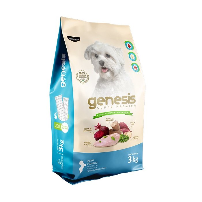 A Ração Genesis Raças Pequenas tem uma combinação de ômega 3 e 6, que mantém a pelagem hidratada e brilhante, ainda contém polpa de beterraba e a zeolita, para manter menor volume e odor fecal e também fornece um auxilio no combate ao tártaro.