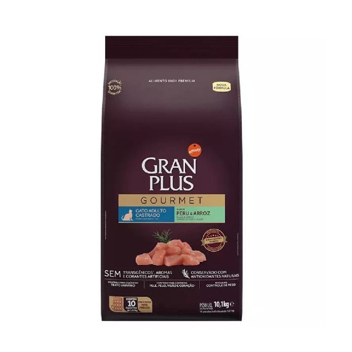 Ração GranPlus Gourmet Gatos Castrados Peru 10 pct ind 1kg