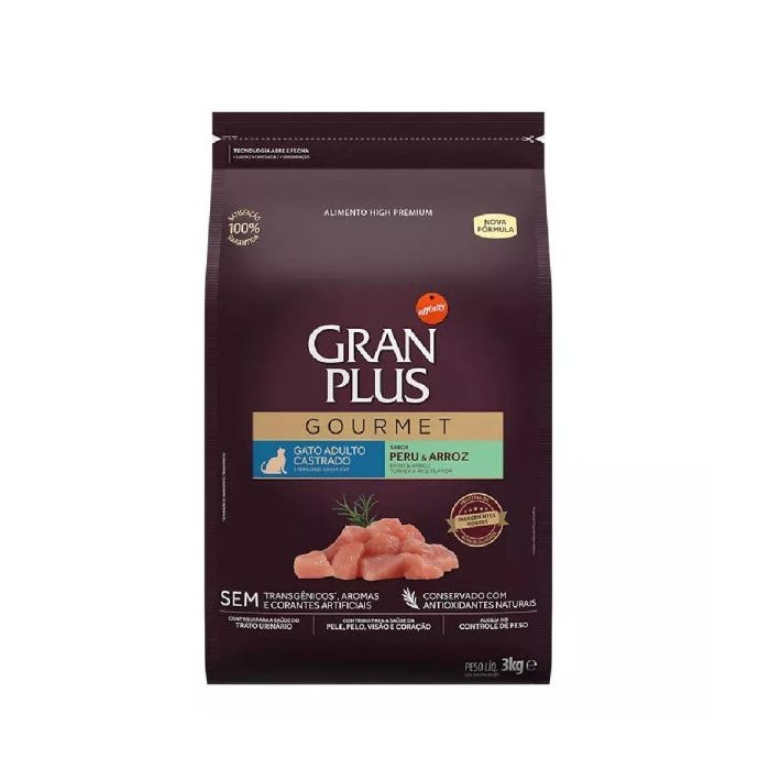 Ração Granplus Gourmet Gatos Castrados Peru e Arroz 3kg