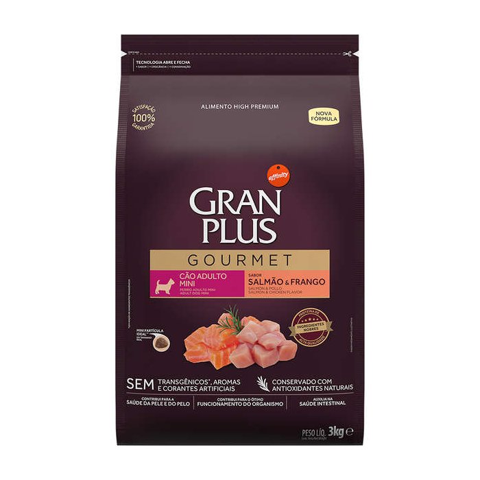 Ração GranPlus Gourmet Salmão e Frango para Cães Adultos Mini - 3 Kg