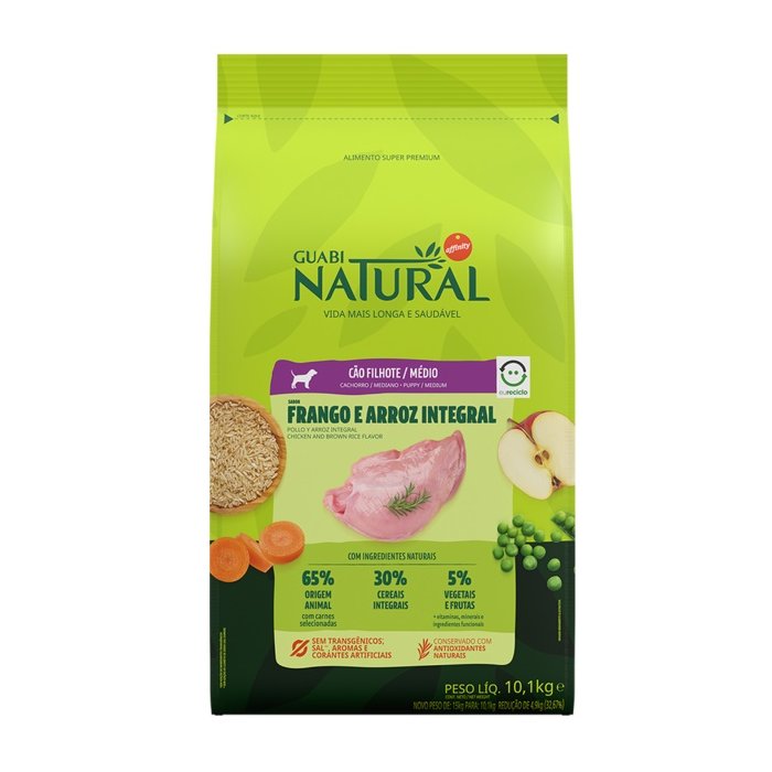 Ração Guabi Natural Frango e Arroz Integral Cães Filhotes Raças Média 10,1kg