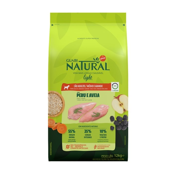 Ração Guabi Natural Light Peru e Aveia Cães Adultos Raças Médias e Grandes 12kg