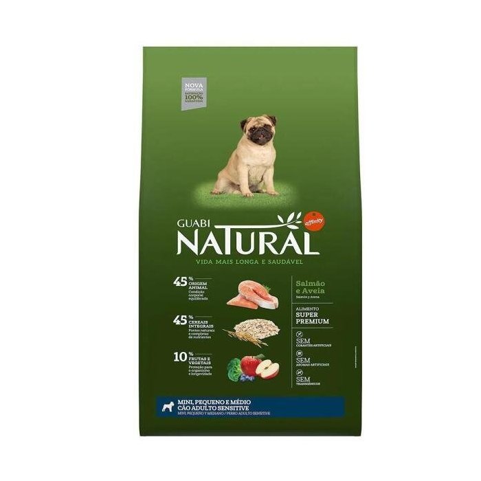 Ração Guabi Natural Sensitive Cães Adultos Miniaturas, Pequenos e Médios Salmão e Aveia (12 kg) - Affinity Guabi
